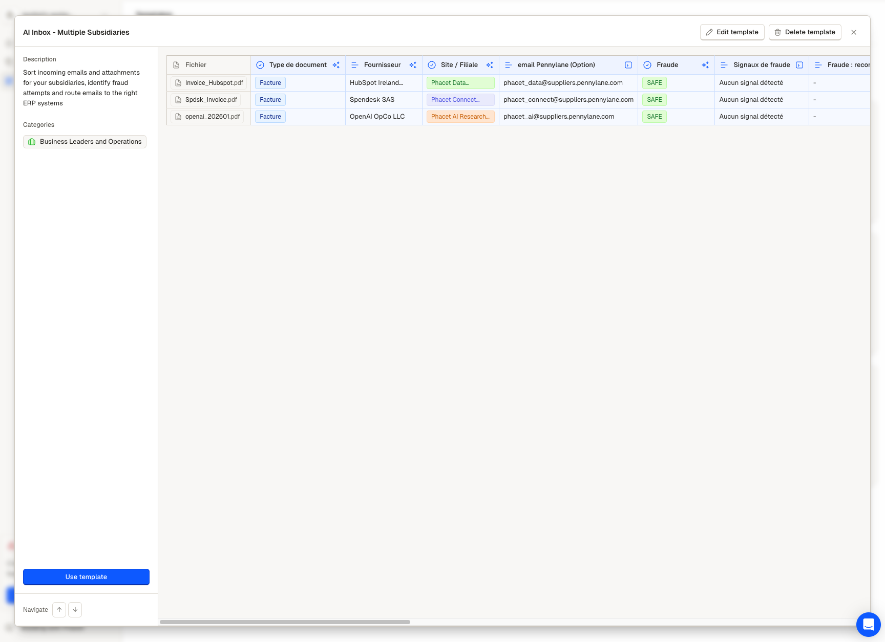 6. Integration preparation. The agent generates routing data ready for your automation layer: Pennylane supplier email per entity, Gmail label IDs per entity and document type.