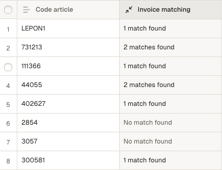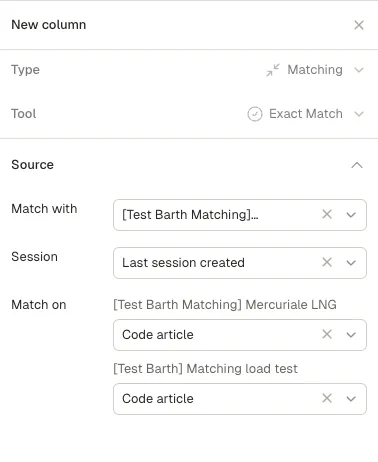 The Matching column lets you match input data from your current Phacet with reference data from another Phacet—automatically and at scale. It’s ideal when you want to reconcile data, enrich records, or validate that two datasets refer to the same entity.